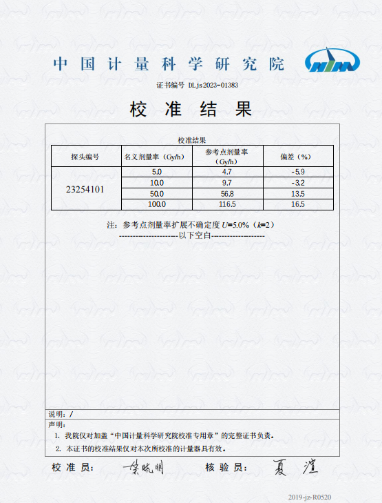 探測靈敏度 | 16 count/s / μGy/h (對于Cs-137) | 16 count/s / mSv/h (對于Cs-137) |